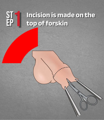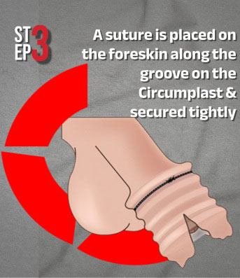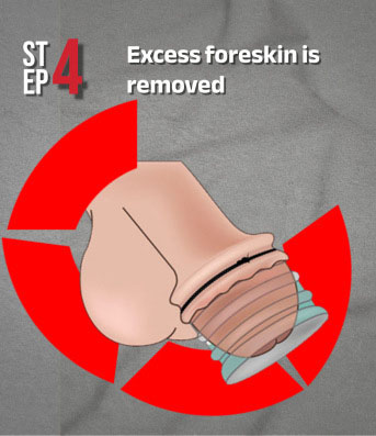 - Excess foreskin needs to be surgically removed and electrocoagulated. The device will detach on its own after a few days.