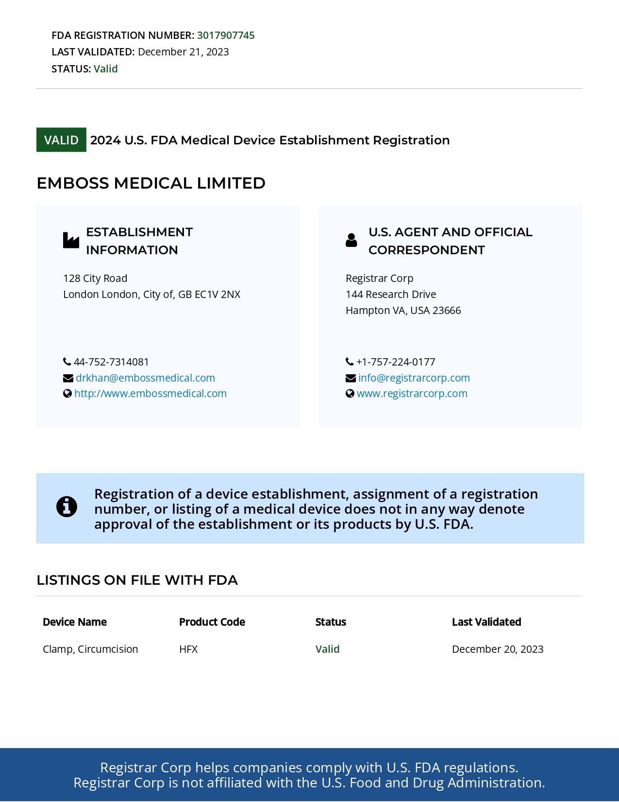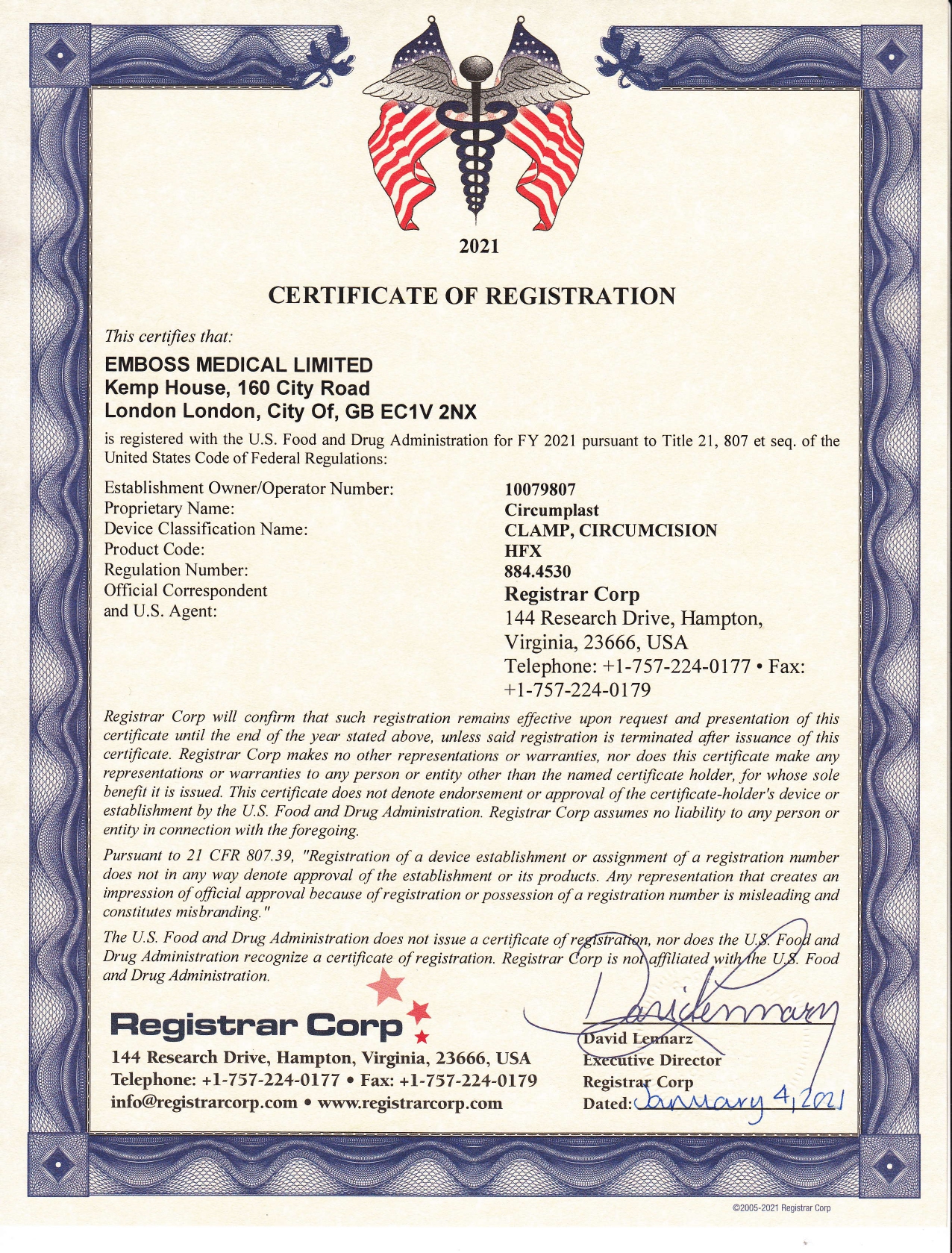 Our company takes pride in being FDA-registered, ensuring that our disposable circumcision devices meet the highest standards of safety, quality, and compliance. This recognition reflects our commitment to adhering to strict regulatory guidelines and delivering products that healthcare providers can trust. Through FDA registration, we guarantee that every device is manufactured under rigorous quality controls, sterile conditions, and in alignment with global medical standards. Our dedication to compliance and excellence reinforces our mission to provide safe, reliable, and innovative solutions for circumcision procedures worldwide.